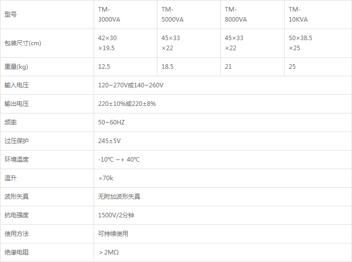 TM系列繼電器式多功能交流穩壓器采用進口繼電器控制,超寬范圍的新型產品,具有延時,過壓保護,市電、穩壓自動轉換等優良功能,掛壁式安裝,能有效拓展和利用空間,流線外形,給人視覺以煥然一新之感,動作靈敏,定時準確,性能穩定,安全省電,造型美觀,結構合理,使用方便,輸入電壓范圍寬等優點,是電冰箱,電視機等高檔家電良好的保護神。