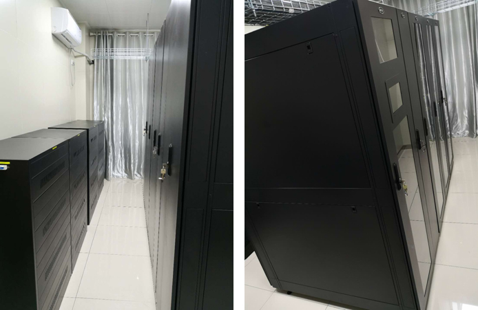 單模塊總功率設計為10KVA/20KVA,行級空調標準化側送風,空調冷量5.5KW/7.5KW/12.5KW,直流變頻技術,高效節能。IT設備柜配置1面至8面,智能化機房全面監控,主機支持B/S架構,隨時隨地訪問,多種告警方式,支持遠程管理。機房面積小于50平方米,政務中心機房采用了科士達IDU單排智能微模塊產品,完全消除了用戶的后顧之憂,延長了不間斷電源的備電延時,保證所有業務的安全性。